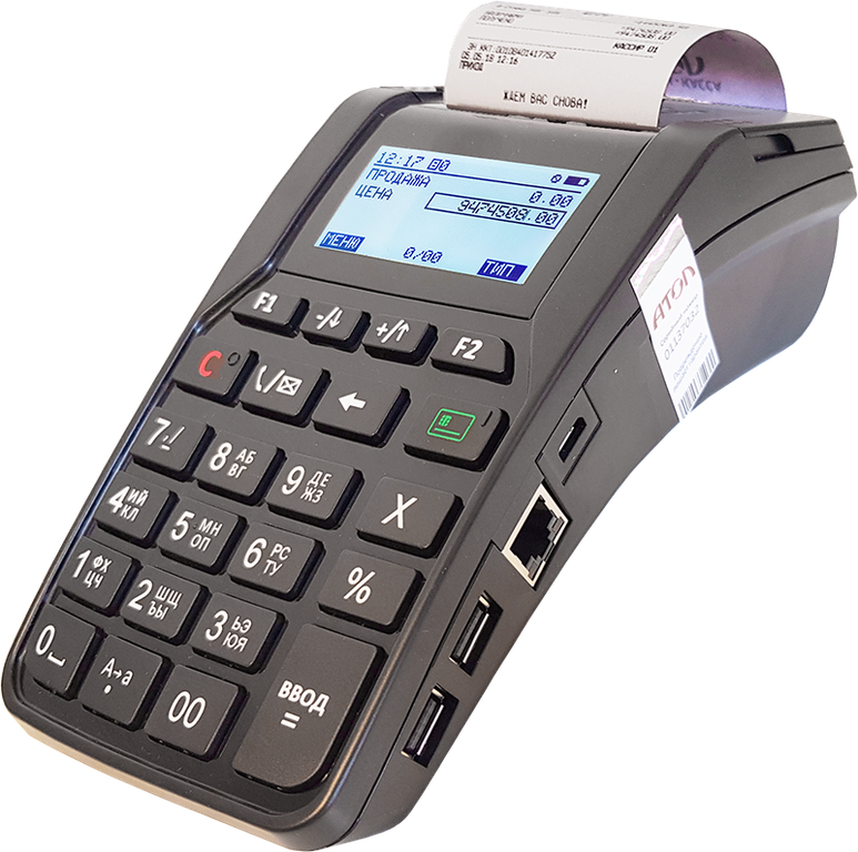 Обеспечит автономность • АТОЛ 92Ф обеспечивает возможность автономной работы до 8 часов. А благодаря наличию специального индикатора, пользователь сможет легко отслеживать уровень заряда и вовремя зарядить аккумулятор. Пластиковая клавиатура • Для тех, кто привык вести расчеты на калькуляторе. Клавиатура АТОЛ 92Ф разработана с учетом пожеланий пользователей и обладает большими клавишами с возможностью совершения операций в одно нажатие ("горячие" клавиши).